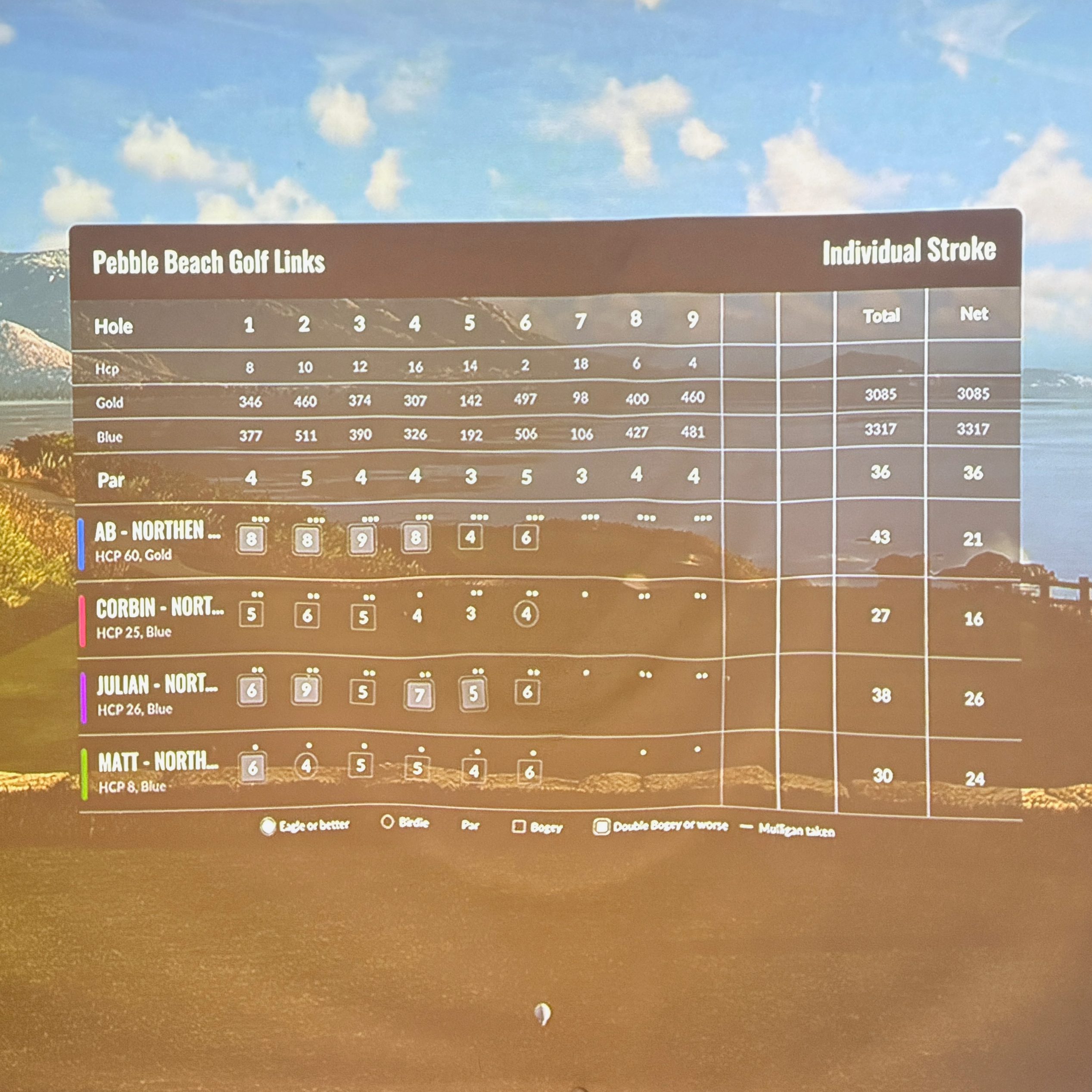 | Par | 4 | 5 | 4 | 4 | 3 | 5 | 3 | 4 | 4 | 25 | ||